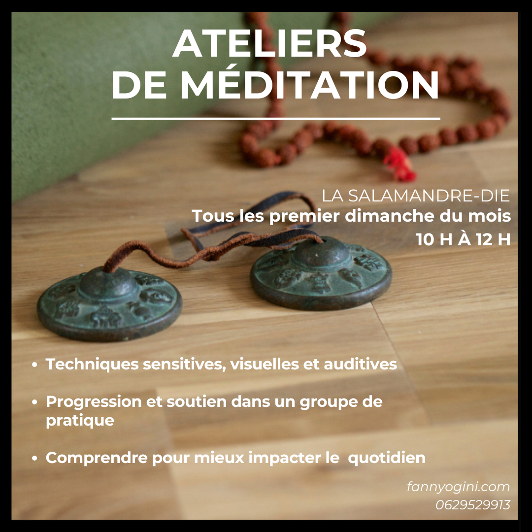 Cet atelier vous permettra de comprendre véritablement le fonctionnement de la méditation, afin de l'adopter dans votre quotidien. Il vous permettra de l'appréhender pour la première fois ou d’aller plus loin dans votre pratique.